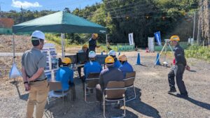 当日は、地元建設業者の皆さまをはじめ、土岐市役所や多治見土木事務所の職員の方々にもご参加いただき、最新のICT技術を実際に体験していただく貴重な機会となりました。